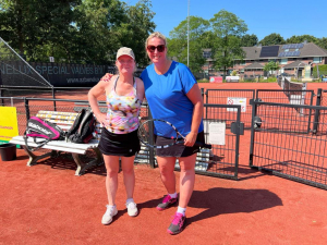 Bij de dames ging de finale tussen Loes Blank/Nadine Elzinga en Margreet Schilder/Nicoliene Veerman. Tijdens de poulewedstrijden hadden Margreet en Nicoliene in twee sets gewonnen van Loes en Nadine. Zou het ze in de finale weer lukken? Het werd een spannende partij! De eerste set ging naar Loes en Nadine, waarna Margreet en Nicoliene in de tweede set een comfortabele voorsprong namen, zodat iedereen ervan uitging dat een derde set de beslissing moet brengen. Daar bleken Loes en Nadine toch anders over te denken en draaide de tweede set compleet om, zodat een derde set in deze hitte hen bespaard bleef.
