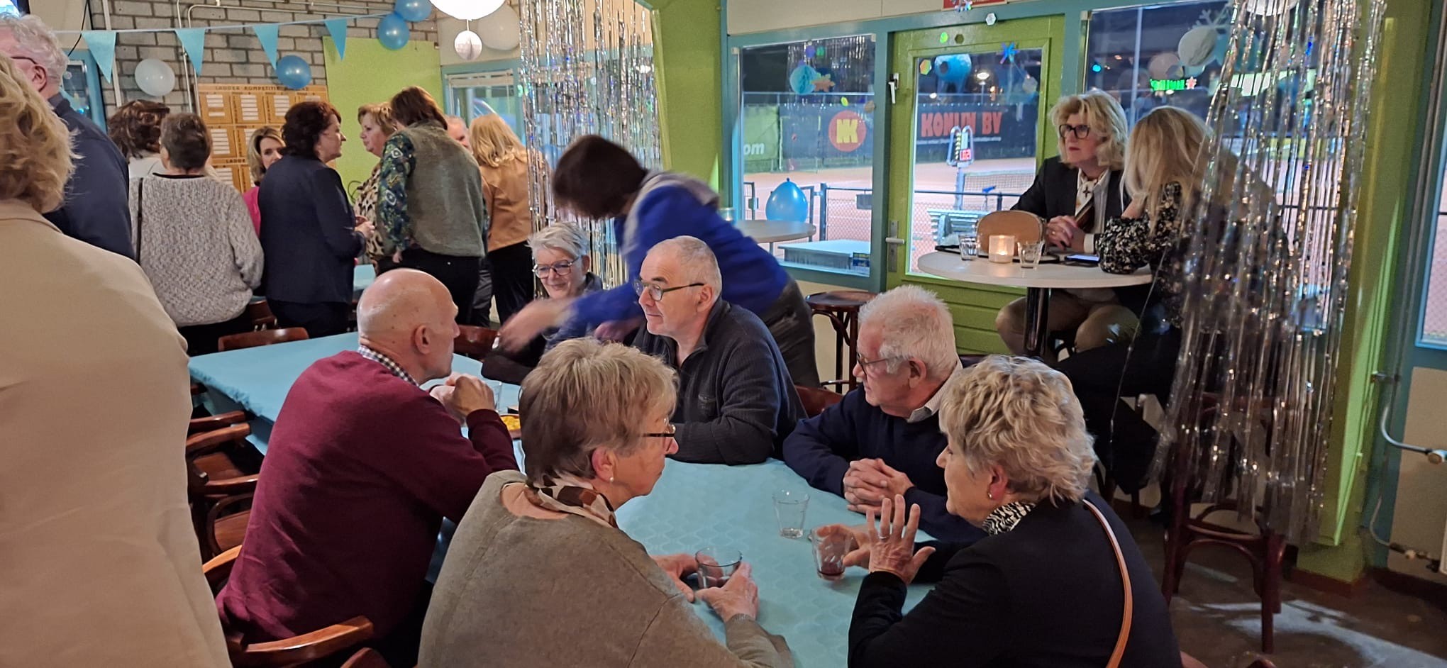 Daarna kon er op het park een aantal spelletjes worden gedaan. Zo stond op baan 1 een instrument opgesteld waarmee je de snelheid van jouw service kon meten. Voor zover bekend werd een topsnelheid gehaald van 124 km/uur. Anderen vermaakten zich met een attractie waarbij je vallende tennisballen moest vangen of met het gooien van tennisballen op een doek waarbij je de ballen op bepaalde vlakken moest zien te krijgen. En in de kantine was nog een tafel-curlingbaan ingericht. De vrijwilligers hoefden zich niet te vervelen. En afgaande op de reacties mogen we spreken van een geslaagde avond waar de vrijwilligers terecht in het zonnetje zijn gezet.
