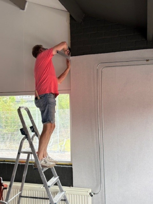 Al enige maanden zijn we bezig met het opknappen van het clubhuis, een wens die volgens het ledenonderzoek uit het najaar van 2023 bij veel leden leeft. Als gevolg hiervan is het al een tijdje een rommeltje in de kantine. Maar langzaam maar zeker vorderen de werkzaamheden. Werkzaamheden die, om kosten te besparen, door (helaas een beperkt aantal) leden zelf worden verricht. Het schilderwerk komt langzamerhand ten einde, al moet een aantal plafondplaten nog geschilderd worden. Er is begonnen met behangen en het aanzicht van de bar wordt op korte termijn ook onder handen genomen.
